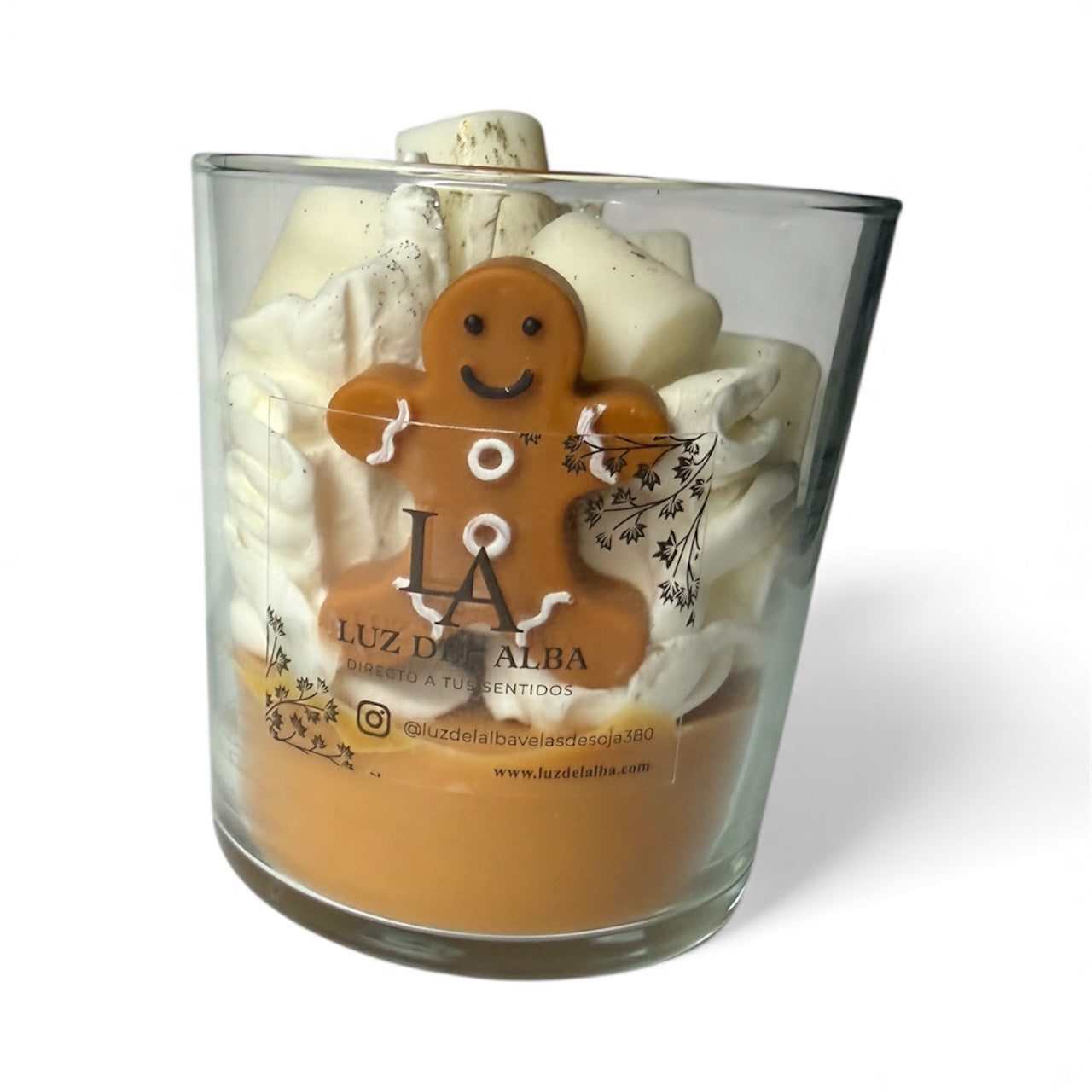 Descubre la magia de la navidad con nuestra vela café Latte Navideño, hecho a mano en cera de soja de 360 gramos y con mecha de algodón que ayuda a un quemado limpio.